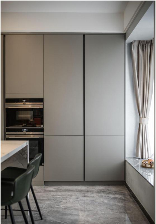 收納柜:高級質感的銀色調,簡潔的隱形拉手設計,顯得大氣舒暢,讓整個空間整潔有序,視覺效果極強!