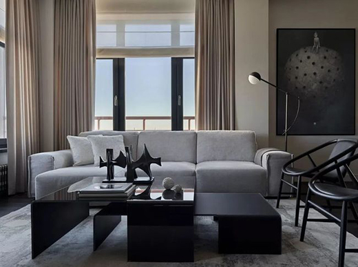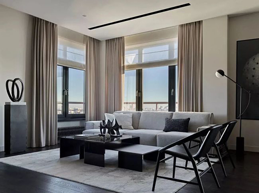 Marina Platonova和Oksana Grushko設計了一個80㎡的空間,業主是一個年輕人,熱愛當代藝術,尤其喜歡至上主義和建構主義。該公寓位于莫斯科Presnensky區一棟新建筑的19層。大量的陽光從大窗戶射進來,還可以欣賞到城市的美景。