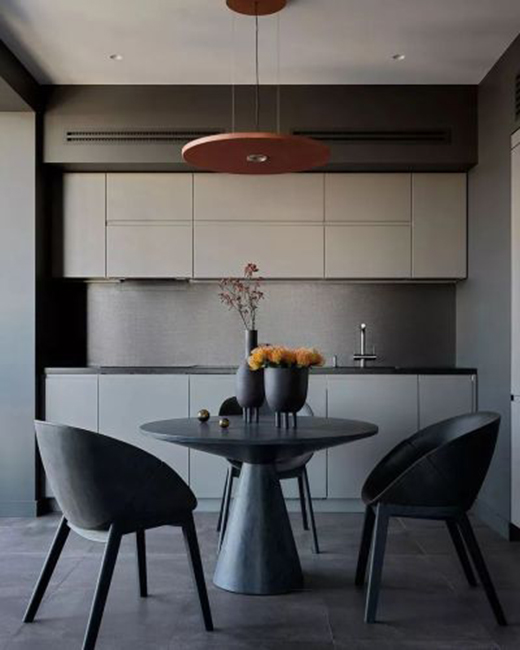 冰箱和烤箱隱藏在右側的壁龕中,不干擾空間的整體感知。