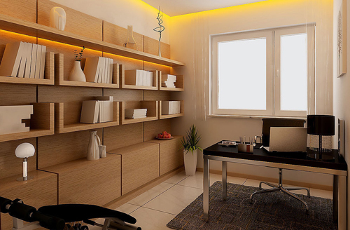 簡潔線條的書房設計,選用了淺色的地板,百葉窗簾,簡單式的沙發,書房非常舒服。
