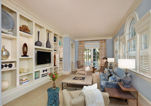 相反,冷色調中比較鮮亮的顏色,對于小戶型而言就顯得恰如其分了,這些色彩能夠帶給人擴散、后退的視覺感受,讓人覺得空間比實際更大一些,同樣也能帶給人輕松、愉快的心理感受。