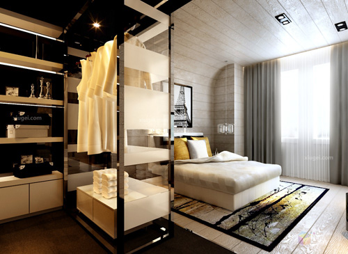 衣帽間隔斷既能打破固有格局、區分不同性質的空間,又能使居室環境富于變化、實現空間之間的相互交流,為居室提供了更大的藝術與品位相融合的空間。