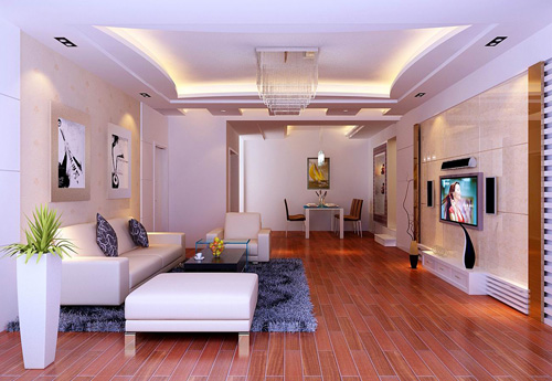 重點突出因為視覺的關系,墻面理所當然地成為重點。但四面墻也不能平均用力,應確立一面主題墻。主題墻是指客廳中最引人注目的一面墻,一般是放置電視、音響的那面墻。在主題墻上,可以運用各種裝飾材料做一些造型,以突出整個客廳的裝飾風格。主題墻是客廳裝修的 “點睛之筆”,有了這個重點,其他三面墻就可以簡單一些,假如都做成主題墻,就會給人雜亂無章的感覺。頂面與地面是兩個水平面。頂面在人的上方,頂面處理對修整空間起決定性作用,對空間的影響要比地面顯著。地面通常是最先引人留心的部分,其色彩、質地和圖案能直接影響室內觀感。
