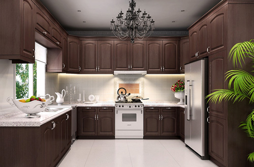 近兩年,復古風再次刮起一陣旋風。深棕實木櫥柜搭配黑色水晶燈,復古氣息滿溢的同時,透著一股藝術氣息。棕色與白色家具色彩搭配,完美融合,締造出濃濃的生活情調。