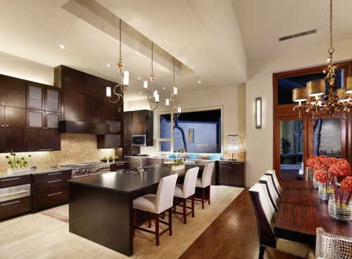 如果你想讓廚房的東南亞風格更加明顯,那么你就可以選擇設計一個開放式的廚房,因為這樣人們就能在餐廳中看到整個廚房的設計。一般的廚房會有廚房置物架和櫥柜,這些都是為了擺放廚房用具和碗盆的。如果沒你想讓你的廚房顯得更加充滿生命力,你也可以在櫥柜上擺放一些小的植物盆栽做裝飾。又或著你不想讓廚房直接受到陽光的侵害,你也可以在廚房的窗戶上安裝百葉窗做保護,這些都是非常能體現東南亞風格自然感覺的裝飾。
