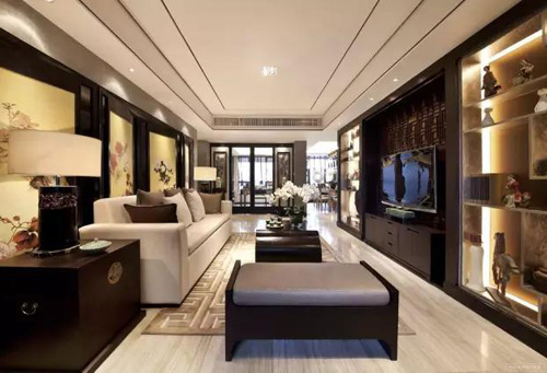 新中式裝修設計格調明凈而清雅,視覺感受恢弘富麗,裝飾用色力求淡然,給人一種簡約而現代的舒適感。