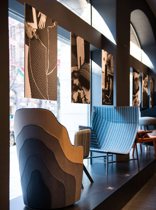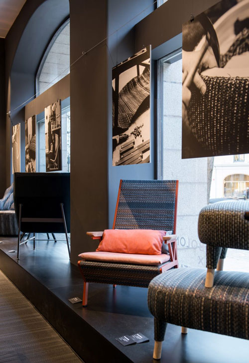 Bolon在展會上推出了兩款新產品:一種名為Wave的新Bolon Studio瓷磚,是傳統(tǒng)赤陶瓦屋頂的彎曲形狀;一種是由建筑師讓?努維爾設計的條紋編織乙烯基地板系列。Bolon還展示了與領先的家具設計師和生產商合作的一系列家具,他們通過結合Bolon紡織品重新詮釋了經典家具的設計;這些家具都是一次性實驗品,這種經驗可以幫助公司在未來開發(fā)一個專用的家具面料收藏庫。