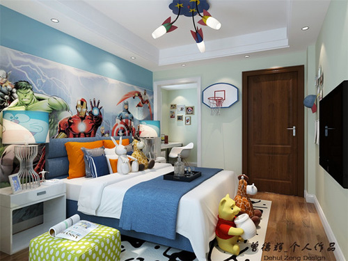 在兒童房的設計與色調選擇上,設計師特別注意安全性與合理的搭配。色彩豐富多彩,活潑新鮮,簡潔明快,具有童話式的意境,可以為兒童帶來溫馨美妙的生活體驗。采光好,向陽,充足的照明使房間更加溫暖,也讓孩子擁有充足的安全感。