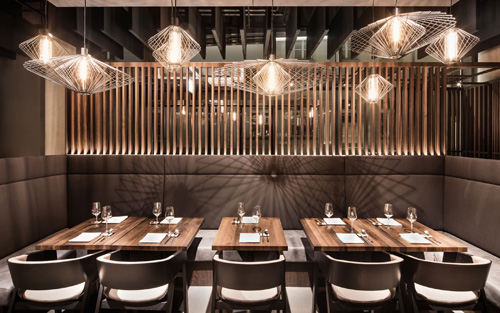 餐廳的現代設計風格與亞歐融合的美食一樣精致而富有創意,在設計上他們使用了高品質的材料和自然色彩來重新詮釋傳統亞洲建筑元素。