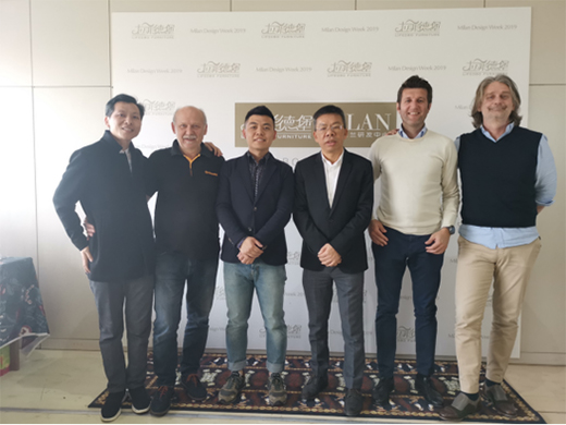 拉菲原創高定總經理游險峰先生,意大利頂級技師Bruno Giglietti先生,拉菲德堡米蘭研發中心運營總監魏越文先生,拉菲德堡國際家居董事長林耀生先生, 意大利Alessi品牌設計師Paolo Gerosa先生,知名意大利建筑師,室內設計,游艇設計師Pietro Cabrini 先生(由左至右)