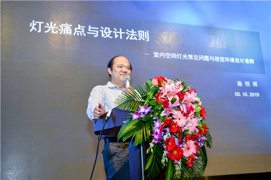 下午的論壇上,施恒照以《燈光的痛點與設計法則》為題演講。他列舉了一系列室內空間常見的燈光問題,總結出五個燈光生存法則:1.不要只照亮地面,2.照亮建筑特點,3.提供視覺先后層次,4.創造多層級的光,5.跨界與融合。40分鐘的演講為室內設計師傳達了豐厚實用的燈光設計知識。