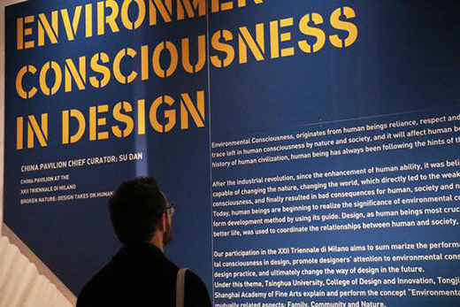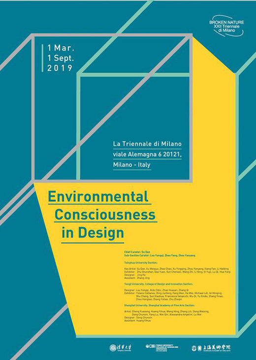2019年3月1日-9月1日,第22屆米蘭國際三年展在Triennale Museum展出,主題為“破碎的自然——設(shè)計為人類生存”(Broken Nature: Design Takes on Human Survival),試圖在通過設(shè)計對接人類與生存環(huán)境的關(guān)系問題上作出探索,向世界展示設(shè)計如何提供解決我們時代問題的新思路。蘇丹教授作為總策展人,統(tǒng)籌清華大學(xué)、同濟(jì)大學(xué)設(shè)計創(chuàng)意學(xué)院、上海大學(xué)上海美術(shù)學(xué)院組織中國館“設(shè)計中的環(huán)境意識”參與其中。同時中國館也是本屆三年展中面積最大的國家館。
