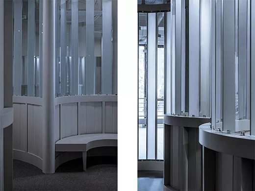 這個項目不僅是一個室內(nèi)項目,本質(zhì)上是視線互相穿梭的三維室內(nèi)裝置。它也不僅是視覺對象,更是個適合人們進(jìn)入的溫柔圓形容器,使用者常形象地稱這里的圓形空間為“大花瓶”。人們進(jìn)入其中,他們從內(nèi)部而不僅是從外觀上理解它。