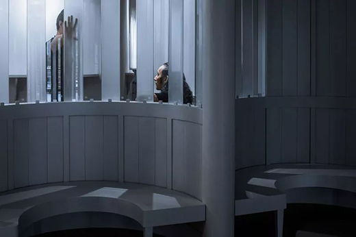 實(shí)際效果說明,我們對這個方式的組合和處理是成功的。簡單的曲線完形效果不但不是一個炫技式的、冷冰冰的幾何組合,而是跳脫了外在的形式化和結(jié)構(gòu)化,打破了邊界,完美地演繹著建筑與藝術(shù)的關(guān)聯(lián)。與此同時,圓形的多種組合也傳達(dá)了一點(diǎn)持續(xù)性、神秘的迷失感,配合著光線的交錯與重疊,它的復(fù)雜性也寓言著劇院中低暗的氛圍,讓氣氛安靜而優(yōu)雅。