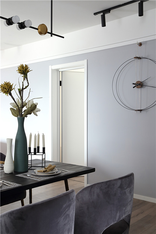 在開放性的空間中,設計的重點在于客、餐廳關系的把控,合理動線規劃,融入美好幸福的生活范本,生活的藝術感迸發而出。時尚前衛的擺件,讓未來盡入眼簾。