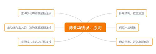 因而,商業(yè)動線設(shè)計在大體量商業(yè)物業(yè)中作用越來越明顯,其設(shè)計一般有六條原則: