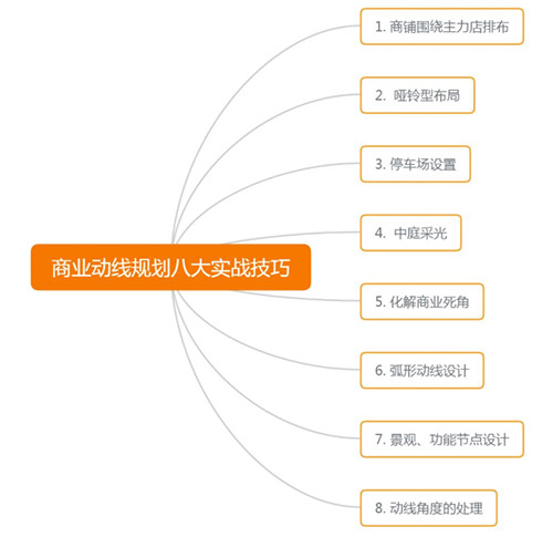 除了這六大原則之外,在商業(yè)的動線的規(guī)劃中還有著八大實戰(zhàn)設(shè)計要素。