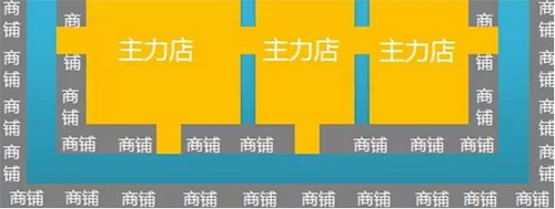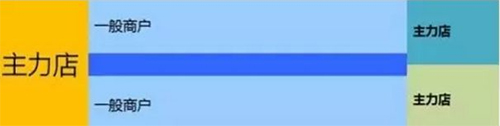將主力店設(shè)置于購物中心的兩端,將一般商戶設(shè)置于購物中心的中部,這樣在兩大主力店的拉動下,中間的一般承租戶就能享受更多的人流,實現(xiàn)資源互動,人流共享的目的。