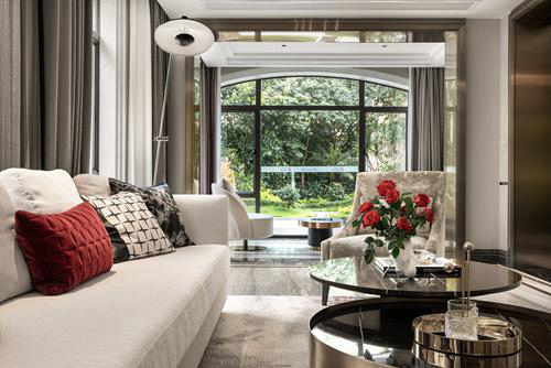 負一層會客廳整體通透大氣,品質(zhì)感的家具擺設與硬裝搭配得天衣無縫,設計師希望借由簡約而不簡單的組合,讓優(yōu)雅格調(diào)和氣質(zhì)美感彰顯于空間各處細節(jié)。方正的空間中,圓弧形巧妙置入,讓品味空間多了一絲柔軟,一抹鮮紅則綻放著生活的熱情,于不經(jīng)意間流溢出不凡品味。