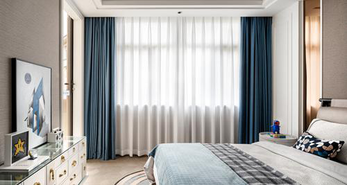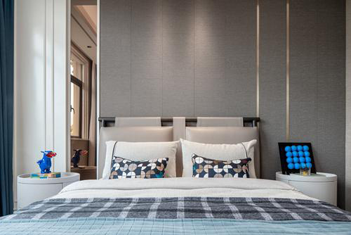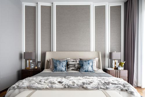 主臥設計呈現(xiàn)出低調(diào)內(nèi)斂的氣質(zhì),色調(diào)上的樸質(zhì)自然與軟裝的質(zhì)感緊密貼合,營造出細膩幽微的的安靜氛圍。