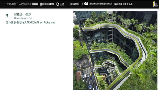 另外,分享幾個我覺得比較有特色的一些案例:深圳萬科中心、南京商品住宅、新加坡PARKROYAL on Pickering、丹麥奧爾胡斯冰山住宅樓。以萬科中心為例,這座建筑用了大面積的綠植,另外用了大面積的玻璃幕墻,增加采光的同時可減少能源消耗;所有空間是穿透的,能達到很多的通風效果;在頂樓也布置了一些太陽能裝置。其實,好的空間是有很多細節在設計前就要考究到的。