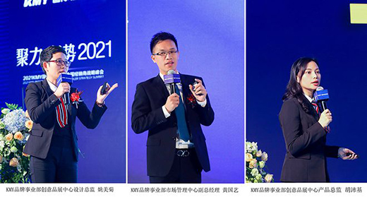 隨后,KMY品牌事業(yè)部市場管理中心副總經(jīng)理 黃國藝、KMY品牌事業(yè)部創(chuàng)意品展中心設計總監(jiān) 姚美菊 、產(chǎn)品總監(jiān) 胡沛基,分別從終端賦能規(guī)劃、產(chǎn)品規(guī)劃和展示設計三個方面分享演講,通過激活終端、強化體驗、打造差異化產(chǎn)品來提升品牌影響力和競爭力。
