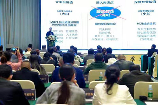此次家裝節上,還有一位神秘的特邀嘉賓專程從上海趕到武漢,為與會人員分享主題演講《頭部時代的家裝行業》,他就是家裝500強創始人及家裝下午茶創始人許春陽。他談到,根據近年來一直做裝企的第三方咨詢服務平臺的經驗,看看過去五年、未來十年的發展變化歷程,家裝企業認知要隨著環境的改變而改變,2015年以前家裝市場相對來說比較傳統,然后2015年隨著互聯網家裝企業的加入,“699套餐”開始出現在市場上,打破了傳統家裝理念,裝企開始有了從服務型企業引入產品的概念,頭部裝企的業績也是從這里開始不斷上升的,產品結構不斷發生變化,從半包到出現了“產品包”再到“整裝”,最近兩年更是出現了“大店模式”,有的甚至面積可達到3萬方以上。這一切只能說明一個事實:零售正在逼近拐點,賣場中心時代迭代為整裝中心時代。