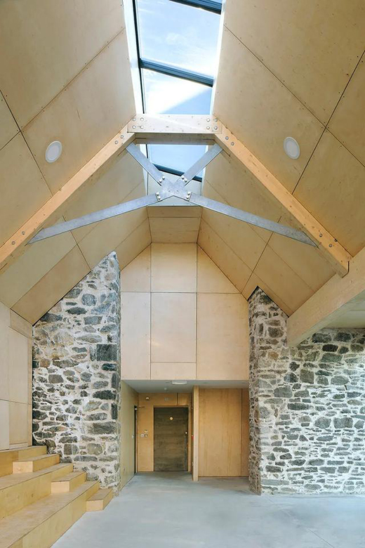 該項目的基本結構是膠合木,創造了一個巨大的工業式空間,木材給室內帶來溫暖的感覺,與裸露的石材形成對比,經過改造的建筑將用于建造木船,并且還將傳統的造船技術傳授給孩子和成年人。