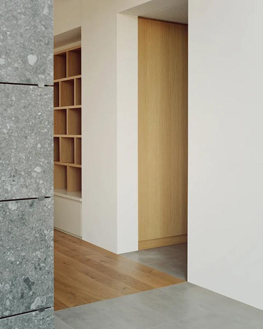 設計清理了整個空間,僅留下必要的部分。盡管地面由真正的大理石制成,建筑中很多其他元素都采用人造石材,項目便利用了這種兩面性。所有表皮保留原本Ekeberg大理石的單一色調。