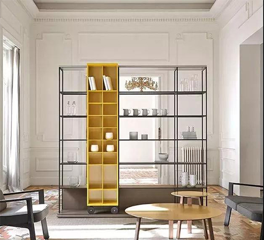 展示柜、書柜等通透型的家具都可以成為既有實用價值又能起到很強裝飾作用的空間分隔物。