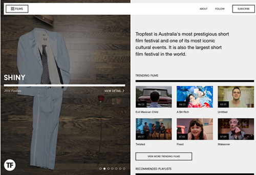 在諸多設計案例中,最值得注意的是Deux Huit Huit 。橫跨首頁主圖的文字的運動方式,當它穿越圖片、背景的時候,是如何確保它的可讀性的。