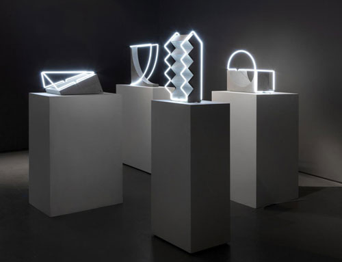 設計師:morgane tschiember法國藝術家morgane tschiember 設計的“open space(開放空間)”系列均由日光燈管和混凝土結構組成,兩部分共同創造出發出冷光的形態。每件作品外形都非常引人入勝,且根據觀察方式與觀察角度的變化,作品的透視效果也會隨之發生變化。三維的結構與周圍環境并置,從而接觸到與幾何學相關的主題、二維與三維的對比以及用光填滿孔洞的理念等。設計師利用這一系列的作品繼續探索了不同維度之間的過渡,以及不同維度之間相互關聯并產生聯系的方式。