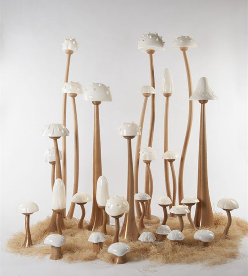 設計師:石國鳳「重生」是來自中央美術學院 2016 屆畢業生石國鳳的畢業設計作品,她的靈感來自于作品的材料「骨質瓷」。骨質瓷是由食草動物的骨灰、粘土、長石和石英為基本材料組成,瓷土經過上千度的歷練而成為堅硬而潔白的瓷器。又因為一直喜歡傘狀菌類,石國鳳通過對菌類大量的材料研究,發現傘菌的生長與骨質瓷的燒制過程具有相似的含義,它們都擁有「化腐朽為神奇」的力量,在經歷了磨難之后重生。