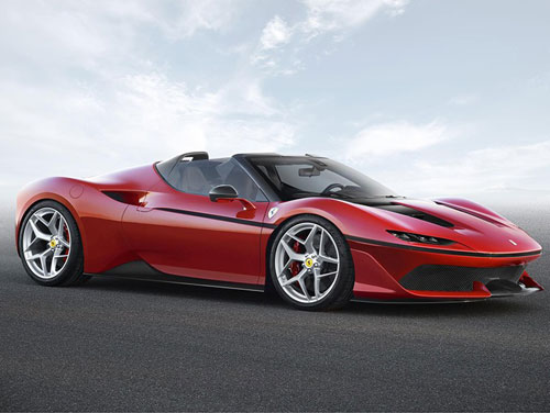 法拉利(ferrari)在日本東京國立藝術中心舉行了其日本公司成立五十周年慶典,并在大會上隆重推出了旗下全新限量版車型J50超級跑車,限量十臺。由法拉利特別項目部與造型設計中心共同攜手打造的這款充滿科幻感的新車是基于現款488 Spider車型打造,并在后者基礎上針對外觀進行了大幅修改,在更加前衛時尚的同時,較多融入了法拉利經典車型的設計元素。從這款J50身上我們仿佛能夠看到上世紀七八十年代在Targa Florio 公路汽車賽事上法拉利賽車的雄姿。
