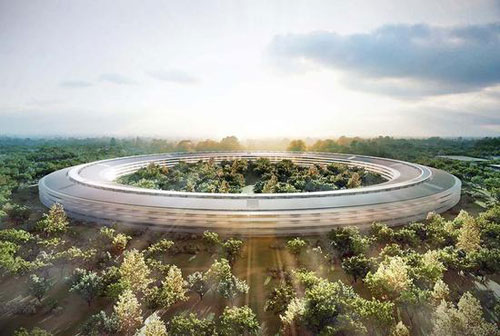 從最新落成的蘋果總部Apple Park也不難看出,作為喬布斯最后的遺作,新的總部大樓充斥著時髦的現代主義風格,夸張的環形結構,豪華的全碳纖維屋頂和大面積使用的曲面玻璃,與方正規矩的索尼大樓形成了強烈的對比。
