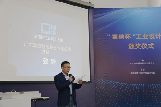2018年3月13日,“富信杯”工業設計大賽在順德職業技術學院(以下簡稱順職院)進行頒獎儀式。廣東富信科技股份有限公司董事長兼總裁劉富林、順職院設計學院院長姚美康、富信公司副總裁洪云、富信公司市場部副部長羅嘉恒、出席本次的頒獎儀式。