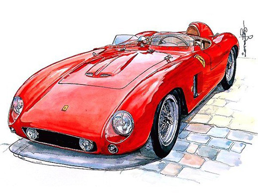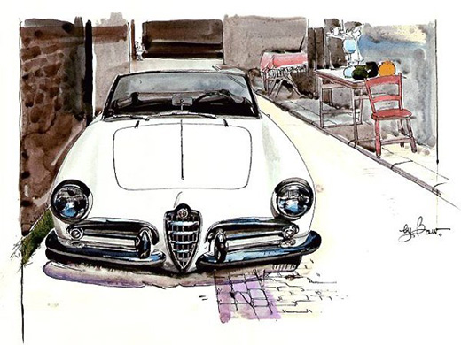 汽車手繪稿=水彩+針管筆=歐式懷舊風格