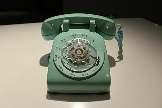 閆實指著手邊的一部淺綠色電話說道:“這個電話已經(jīng)有百年歷史了,你看它的做工,棱角柔和,淺綠色的機身和白色的撥盤搭配,給人一種清新的感覺,放在現(xiàn)在也不過時?!?/p>