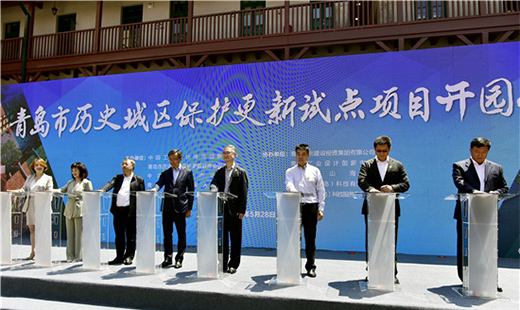青島市歷史城區(qū)保護(hù)更新試點(diǎn)項(xiàng)目揭牌。(崔冬妮 攝)