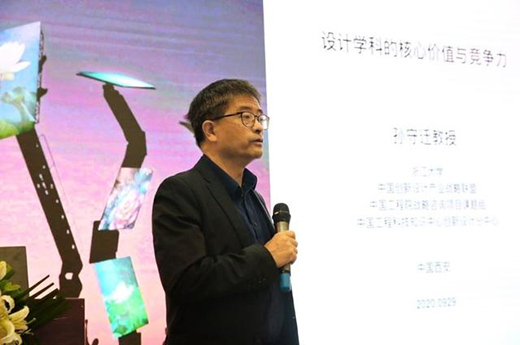湖南大學(xué)設(shè)計(jì)藝術(shù)學(xué)院長(zhǎng),教育部工業(yè)設(shè)計(jì)專(zhuān)業(yè)教學(xué)指導(dǎo)分委員會(huì)秘書(shū)長(zhǎng)、教育部非遺文創(chuàng)聯(lián)盟秘書(shū)長(zhǎng)、新世紀(jì)優(yōu)秀人才季鐵在報(bào)告中闡述了自己對(duì)“新征程 新工科 新設(shè)計(jì)”的理解;