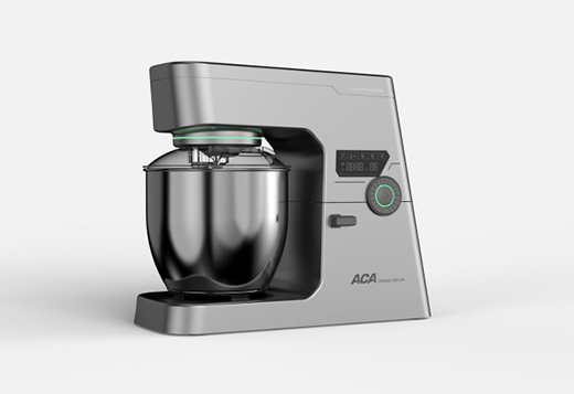 當賴惠成設計師開始著手設計這款廚師機的時候,研究了市面上現有的產品,問題集中體出現在工作時的晃動,噪音和操作等問題。為此,設計師賦予它一個極具視覺沖擊力的幾何形體外觀,搭配深思熟慮的圓角,同時采用全金屬打造以及特殊的表面工藝處理,在硬郎中尋求平衡,金屬光澤表現出了獨特的精美性,和永恒性。