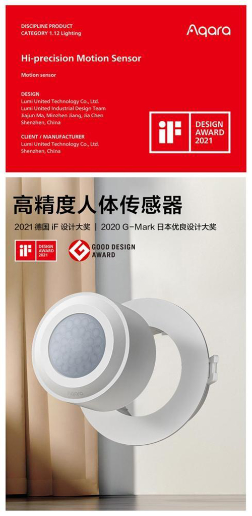 近日,「2021 年德國 iF 設(shè)計獎」評選結(jié)果正式出爐,Aqara 旗下新品高精度人體傳感器憑借獨特出眾的設(shè)計及優(yōu)秀的交互榮獲 2021 德國 iF 設(shè)計大獎,此前該產(chǎn)品就曾斬獲2020 G-Mark 日本優(yōu)良設(shè)計大獎。