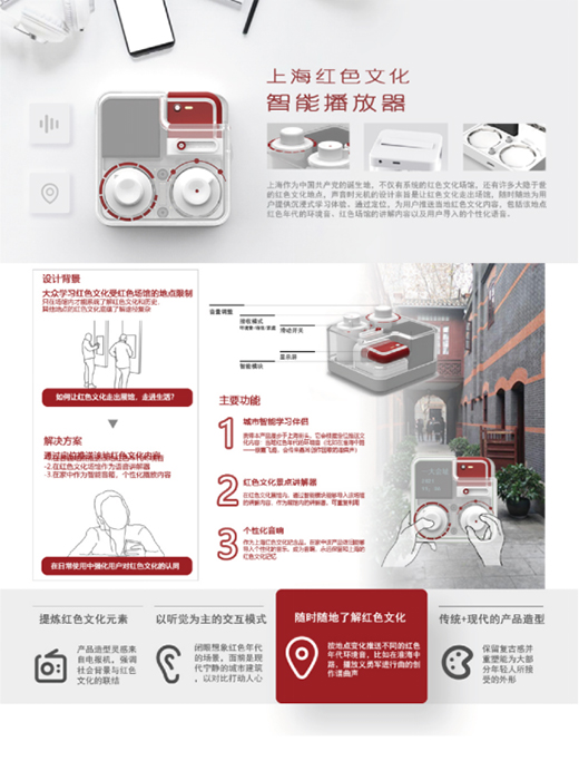 設(shè)計(jì)理念:本作品立足于上海特有的豐富紅色文化資源,旨在通過(guò)創(chuàng)意創(chuàng)新、創(chuàng)造,促進(jìn)紅色文化創(chuàng)意創(chuàng)新活力迸發(fā),更好地把“紅色血脈一傳統(tǒng)工藝一城市文脈”結(jié)合起來(lái)把推動(dòng)文化傳承與時(shí)代方式"結(jié)合起來(lái)。