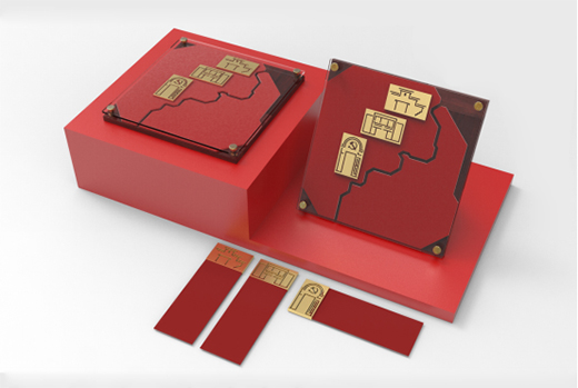 設(shè)計(jì)理念:本套“紅行滬上”系列紀(jì)念門票選擇了魯迅故居、中共一大會(huì)址和四行倉(cāng)庫(kù)遺址三處有代表性的紅色文化景區(qū),將景區(qū)門票與紀(jì)念幣相結(jié)合。這不僅賦予文創(chuàng)紀(jì)念品一定的使用價(jià)值,還具有很高的收藏價(jià)值。同系列的收納展示版造型由上海地圖抽象而來(lái),收納紀(jì)念門票的位置對(duì)應(yīng)了相應(yīng)景點(diǎn)的地理位置。這種新奇的方式讓游客更愿意去參觀紅色文化景點(diǎn),對(duì)了解到的紅色文化的印象更加深刻,同時(shí)也讓游客更愿意與他人分享這段有趣的經(jīng)歷,促進(jìn)人們交流學(xué)習(xí),傳播了紅色思想文化,更拉近的人與人之間的距離。