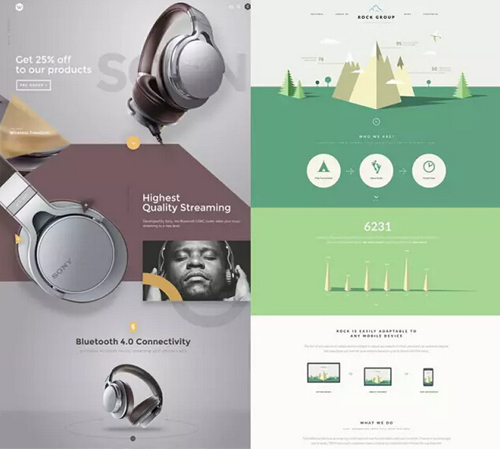 右圖2:整體頁面非常多的留白,除了一些扁平的設計元素外,主畫面以外多是以“白”的形式出現的。