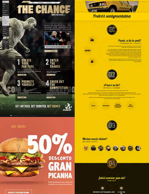右圖1:數字的作用就是用來指示用戶繼續向下閱讀,黃色與黑色的強烈火對比。
