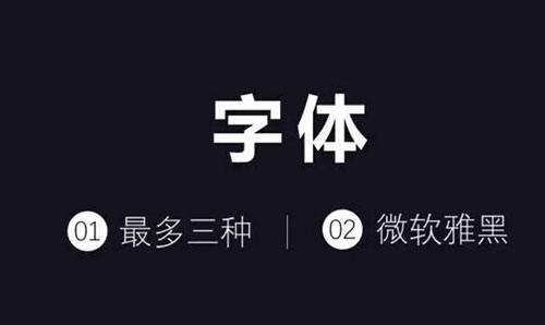 字體:整份PPT的字體最好不要超過三種,字體太多給人一種雜亂的感覺;建議多用微軟雅黑,一則這種字體為非襯線體,在PPT的呈現中更加清晰,二則幾乎每臺電腦都有這種字體,無需顧慮換了一臺電腦后字體無法呈現的問題。