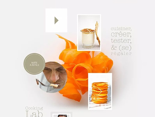 2.整體感增強,不被干擾。設計師打破常規的布局,利用重疊的方式,將圖片文案和背景元素進行結合,讓整個網頁每一個版塊之間既保持了一定的節奏感間隙,又避免了彼此不同的板塊之間元素過多而造成的干擾。
