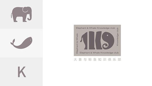 大象與鯨魚知識俱樂部是一個高端知識俱樂部組織,名稱取自最大的陸生動物大象和最大的海洋動物鯨魚,設計也是把品牌重要的元素:大象、鯨魚、知識首字母K結合起來,做到最大的創意。同時品牌營造一種獨特、高端、知識灰的感覺。