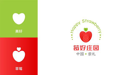 莓好莊園是一所集草莓種植、草莓采摘、草莓周邊產品生產的農家莊園,莊園致力于成為京津冀地區最大的綜合型草莓基地,同時帶動本地區經濟發展。 莓好莊園諧音美好莊園。為了對應草莓產品,我們直接用兩顆愛心巧妙組合成草莓的形狀,意為美好的草莓。與此同時,我延展了LOGO圖形,設計出不用形式變化的草莓,幫助統一傳播。